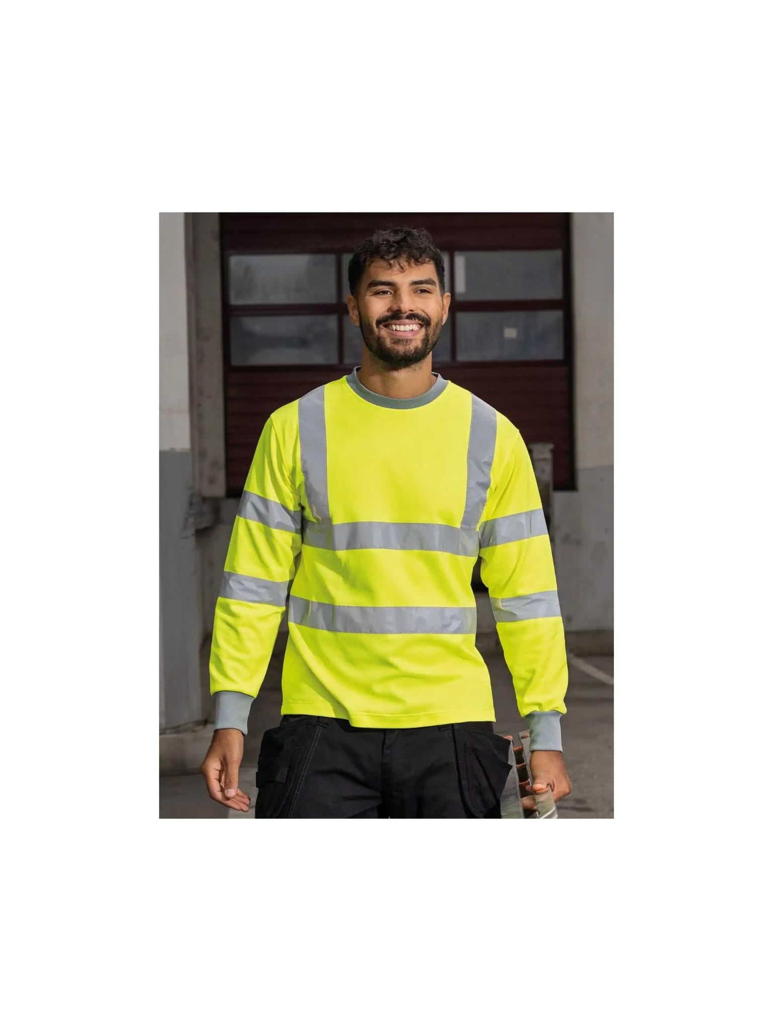 55% cotone, 45% poliestere. 180 g/m². T-shirt alta visibilità a maniche lunghe, tessuto piqué di alta qualità. Due bande riflettenti di spessore 5 cm su busto e spalle. Esterno in poliestere, interno in cotone. Durata delle proprietà in conformità alla normativa EN per 25 cicli di lavaggio a 40°C. Articolo confezionato singolarmente. Prodotto certificato EN ISO 20471: 2013 / A1: 2016. RIS-3279-TOM Iss 2 (Orange). Materiali: Oeko-Tex 100 Standard.